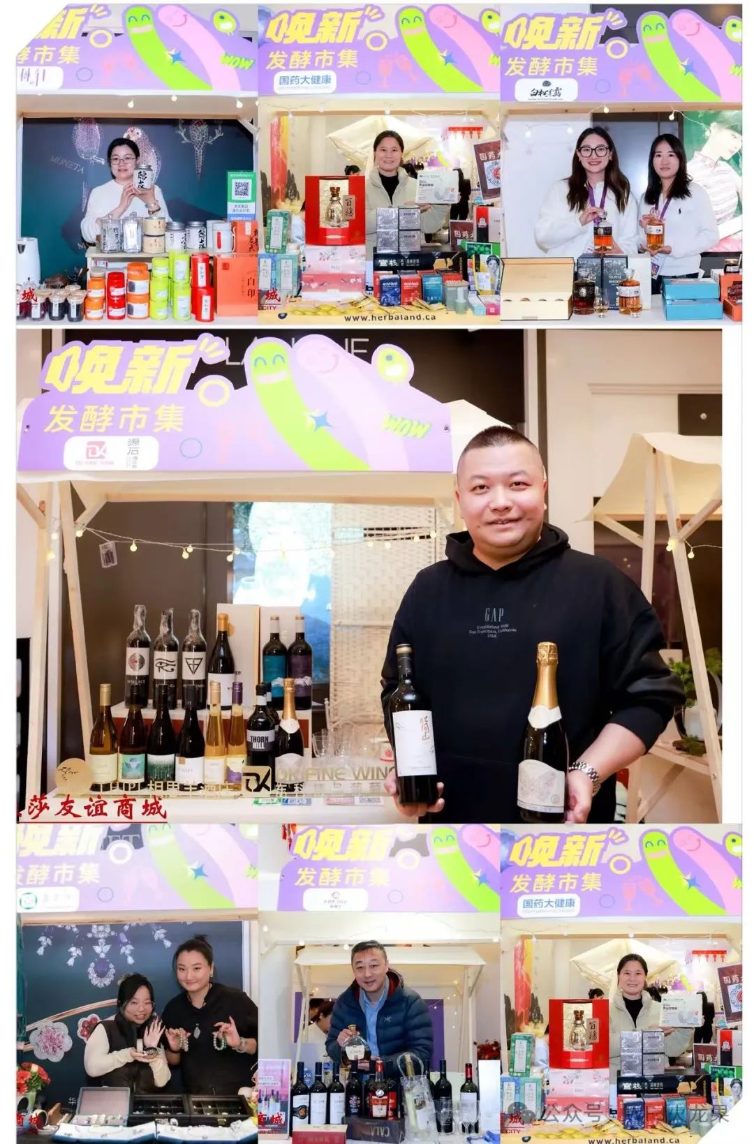 陪同嘉宾们牵动的彩带,一团气球犹如发酵中发生的气泡,从礼盒中升腾而起,象征着发酵市集欢乐开集。20余个国际风情突出的文创展位形成了一条文化消费的“场景小街”,吸引众多卡友特别是红酒喜好者及文艺青年前来打卡、赶集、“淘宝”,体验一站式发酵文化的多元魅力与乐趣。